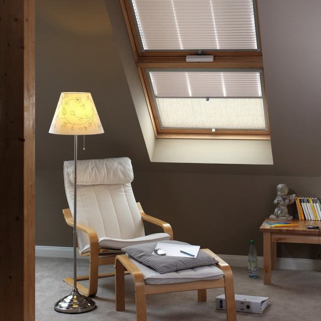 Шторы плиссе являются идеальным решением для оформления, затемнения и защиты от яркого солнца мансардных окон