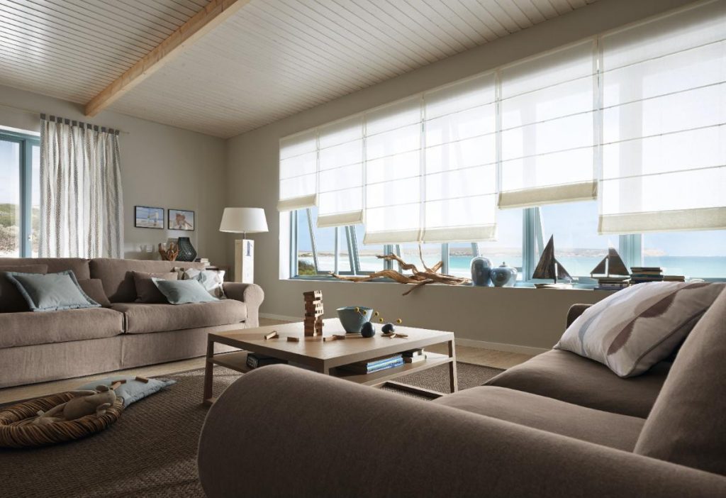 - Для пошива таких штор требуется намного меньше материала, чем для классических моделей. А если речь идет о дорогих тканях, то эта особенность положительно сказывается на стоимости готового изделия.