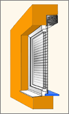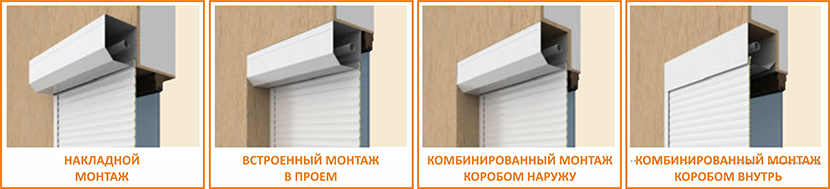 Комбинированный монтаж предполагает, что например направляющие роллеты будут вмурованы в проём, а короб будет установлен на перемычку -ступеньку. Такой «продуманный» способ установки позволит избежать перекрытия светового проёма роллетой, но в тоже время сама роллета в поднятом состоянии будут минимально заметна на фасаде.