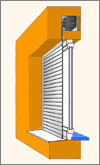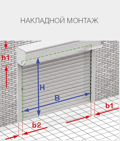 При скрытом монтаже, короб и направляющие роллеты «прячутся» за фасадом здания, открытым остается только полотно роллеты. Для такого монтажа нужно точно знать размеры короба и направляющих.
